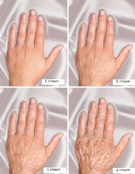- снижении эластических свойств кожи - истончении всех слоев кожи - сухости кожи - ломкости ногтей - уменьшении объема жировой клетчатки 2. Фотостарение кожи рук – это: